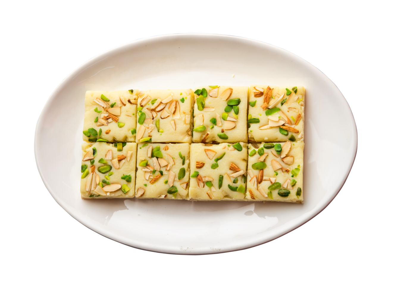 Milk-based squares with flavors like coconut, pistachio, or chocolate.